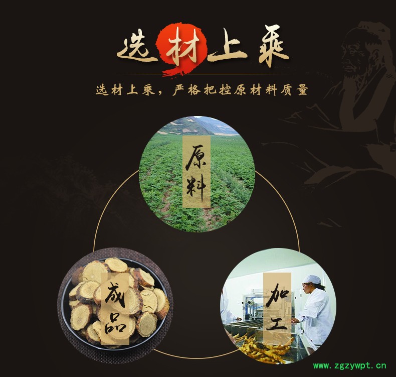 华珍品 本着"地道药材、源于自然、造福人民"的宗旨,严格执行中药材管理规范,以确保中药材质量。