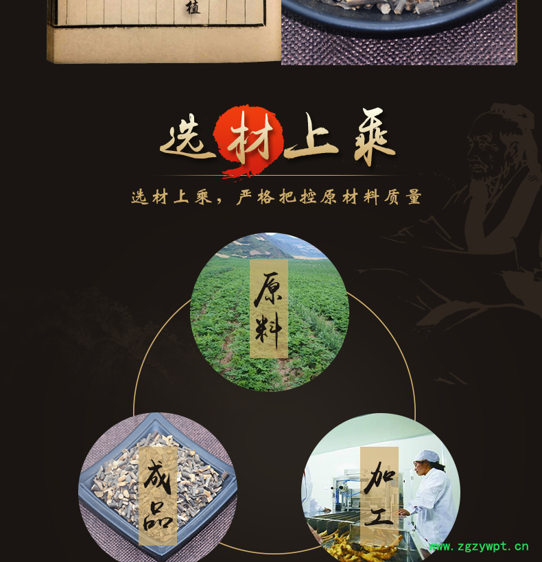 华珍品 本着"地道药材、源于自然、造福人民"的宗旨,严格执行中药材管理规范,以确保中药材质量。