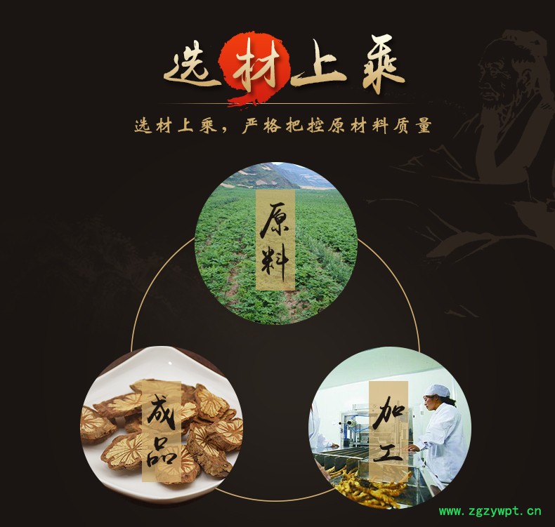 华珍品 本着"地道药材、源于自然、造福人民"的宗旨,严格执行中药材管理规范,以确保中药材质量。
