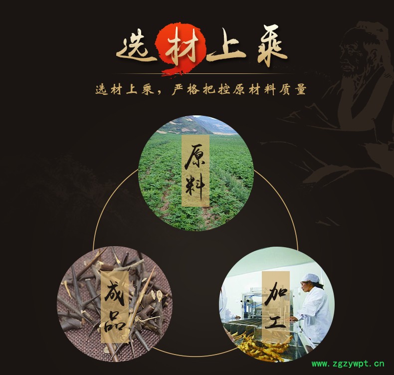 华珍品 本着"地道药材、源于自然、造福人民"的宗旨,严格执行中药材管理规范,以确保中药材质量。