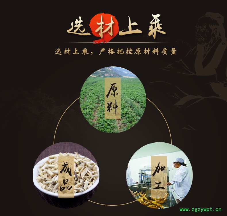 华珍品 本着"地道药材、源于自然、造福人民"的宗旨,严格执行中药材管理规范,以确保中药材质量。