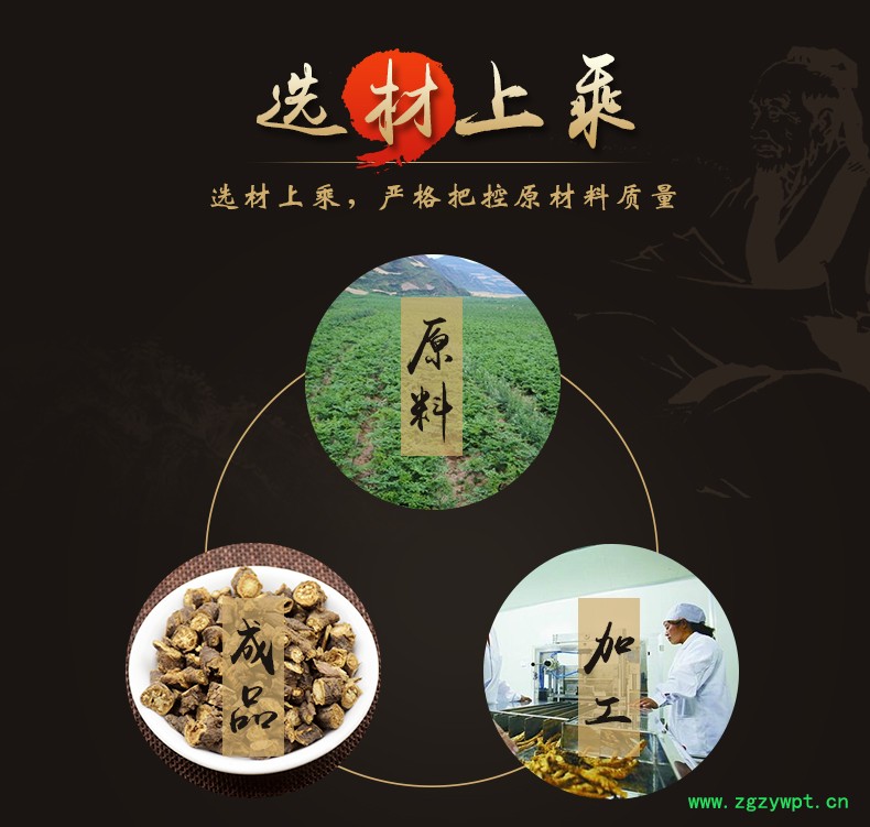 华珍品 本着"地道药材、源于自然、造福人民"的宗旨,严格执行中药材管理规范,以确保中药材质量。