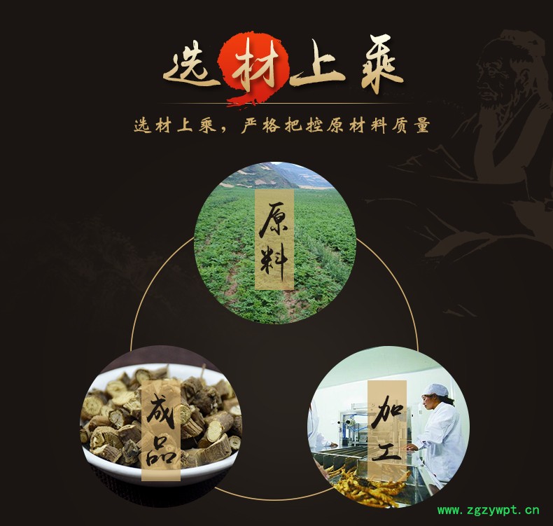 华珍品 本着"地道药材、源于自然、造福人民"的宗旨,严格执行中药材管理规范,以确保中药材质量。