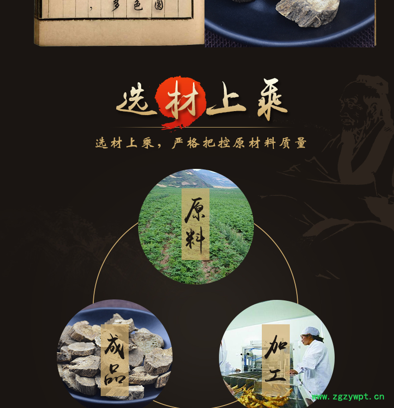 华珍品 本着"地道药材、源于自然、造福人民"的宗旨,严格执行中药材管理规范,以确保中药材质量。