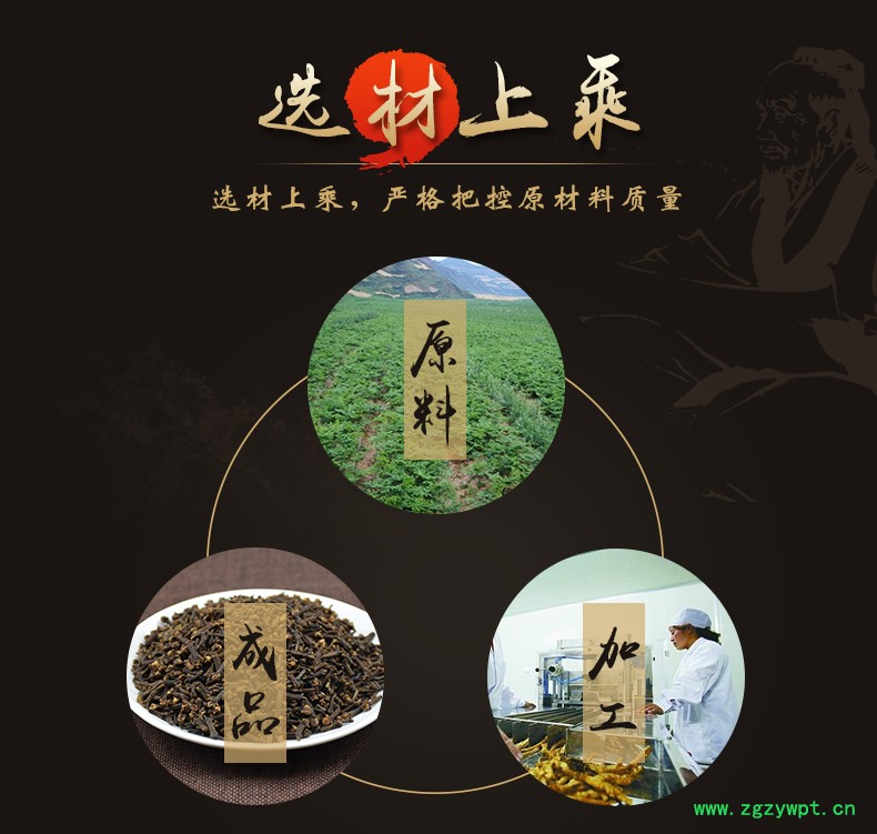 华珍品 本着"地道药材、源于自然、造福人民"的宗旨,严格执行中药材管理规范,以确保中药材质量。