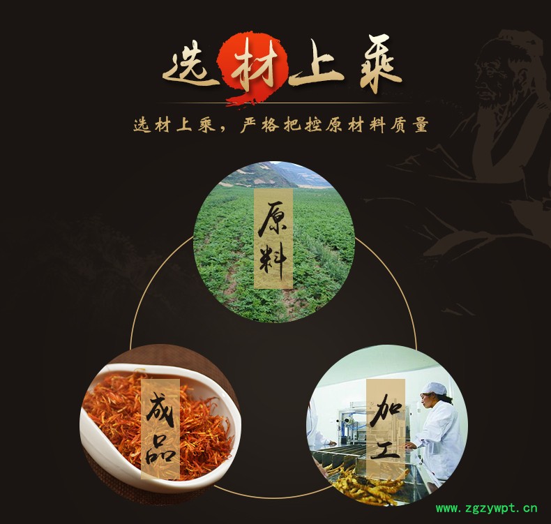 华珍品 本着"地道药材、源于自然、造福人民"的宗旨,严格执行中药材管理规范,以确保中药材质量。