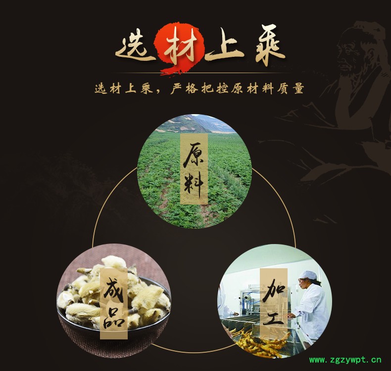 华珍品 本着"地道药材、源于自然、造福人民"的宗旨,严格执行中药材管理规范,以确保中药材质量。