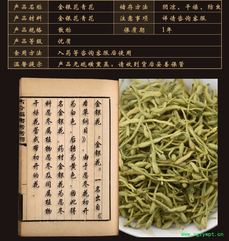 产品: 浏览次数:1083华珍品中药材超市 金银花 01 金银花青花 统 产地 山东省