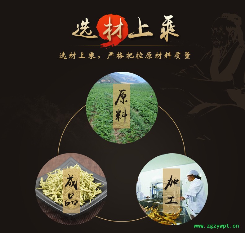 华珍品 本着"地道药材、源于自然、造福人民"的宗旨,严格执行中药材管理规范,以确保中药材质量。