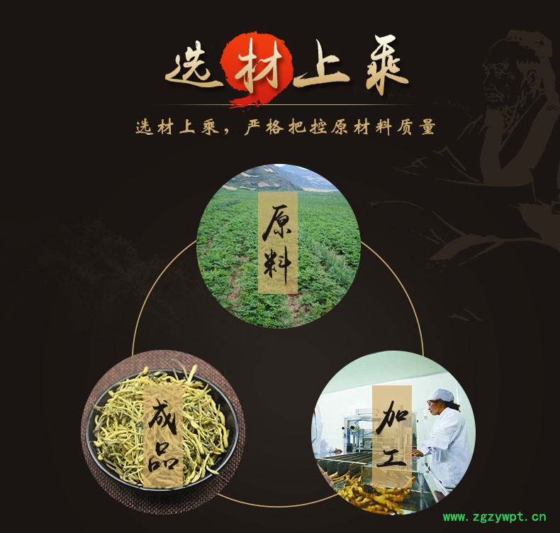 华珍品 本着"地道药材、源于自然、造福人民"的宗旨,严格执行中药材管理规范,以确保中药材质量。