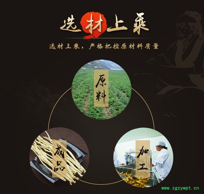华珍品 本着"地道药材、源于自然、造福人民"的宗旨,严格执行中药材管理规范,以确保中药材质量。