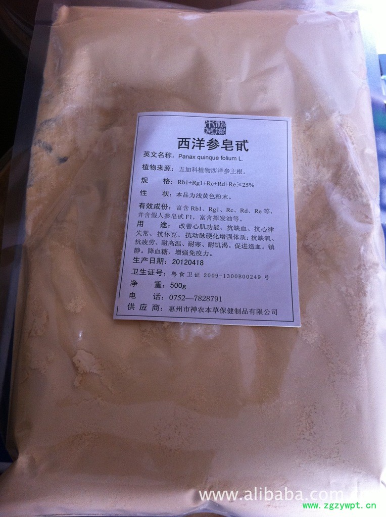 惠州市神农本草保健制品有限公司现货低价提供西洋参皂甙、西洋参茎叶皂甙、西洋参根部皂甙、西洋参提取物、西洋参浸膏。西洋参又名花旗参、洋参。神农本草西洋参根部皂甙原料来**进口西洋参的干燥根,性状为淡黄色