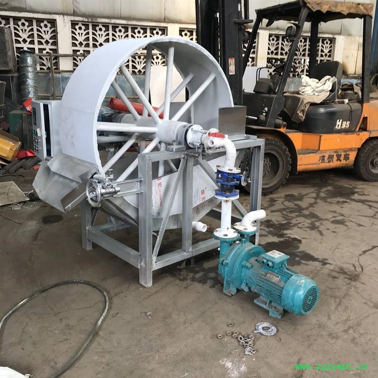 淀粉真空过滤机广泛使用于土豆、红薯、玉米等淀粉生产过程中淀粉浆的脱水工艺,经过大量用户实际使用,证明该机产量高,脱水效果好(淀粉含水率在37-38%)。脱水后的淀粉成碎片状,易烘干,它的工作效率比离心式脱水机高5倍以上。