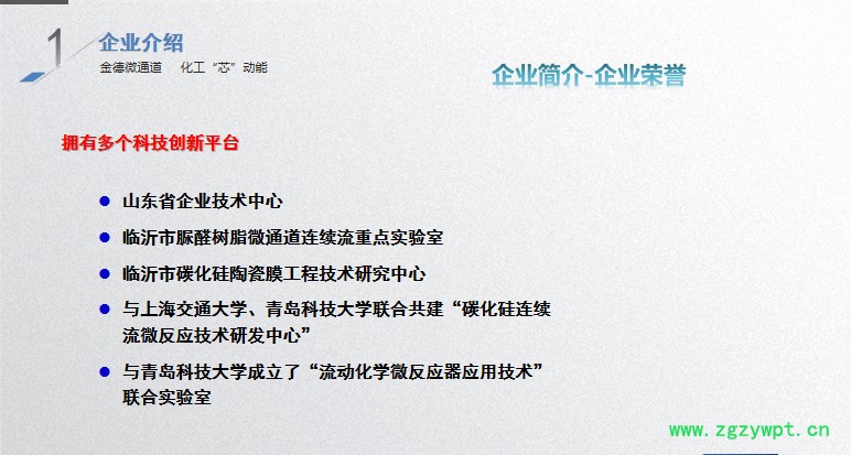 山东金德新材料有限公司成立于2011年,位于山东临沭经济开发区,主要从事碳化硅及其制品研发与生产,2018年被认定为高新技术企业并通过ISO9001质量管理体系认证。公司实现了碳化硅微通道反应器从研发设计,原料生产,加工制造到整机装配一体化建设,并集科研、生产、销售、服务为一体,致力于传统化工向绿色化工转型升级。