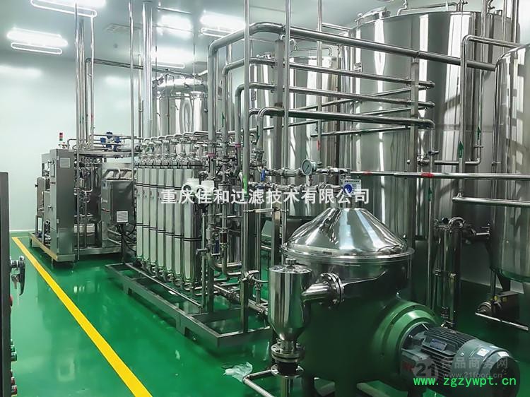 复方凉茶中试提取线可设计单次提取复方凉茶10-50kg,如每批次投入10kg的产线,其提取罐容积选择100L,按照常规1:10的提取比例提取两次,除去渣含水,则提取量约为190L,有效组分含量在1%左右。提取有效组分的同时复方药材中的植物纤维、胶体、悬浮物、微粒子也一并提取出来,因此根据190L/次的量产线配套50-80L/h的离心设备除去悬浮物及微粒子;配套50-80L/h的膜过滤系统,除去植物纤维、胶体等溶解性及半溶解性的大分子杂质;配套50-80L/h的膜浓缩系统,脱出膜过滤滤液中的水分,富集有效组分,得到凉茶浸膏**终约可得到含量在18%的凉茶浸膏约10-11kg,用于下游凉茶饮料企业的生产原料。