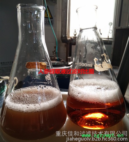 由于植物纤维、胶体、微生物的存在,获得的提取液比较浑浊、颜色较深,杂质含量高,而传统板框、硅藻土等过滤方式,只能除去大部分药渣及固性颗粒、微粒子,不能截留除去呈现为溶解性或半溶解性的大分子杂质,即传统过滤方式的精度不够。