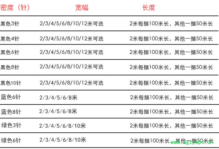 ⑴ 2针,3针,6针黑色绿色等各种颜色.克重扁丝遮阳网。