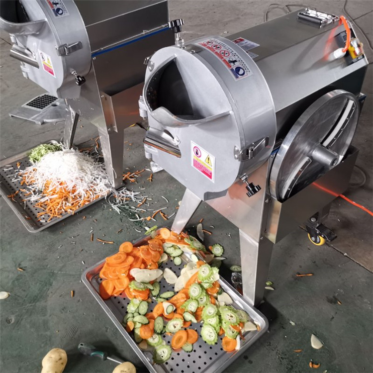我厂生产的多功能切菜机总结多年的经验,反复改进设计制造,“离心式切片构造”可完成硬质蔬菜的切片,自动输送到刀架下,可加工成片、丝、块、丁、菱形、曲线等多种形状。