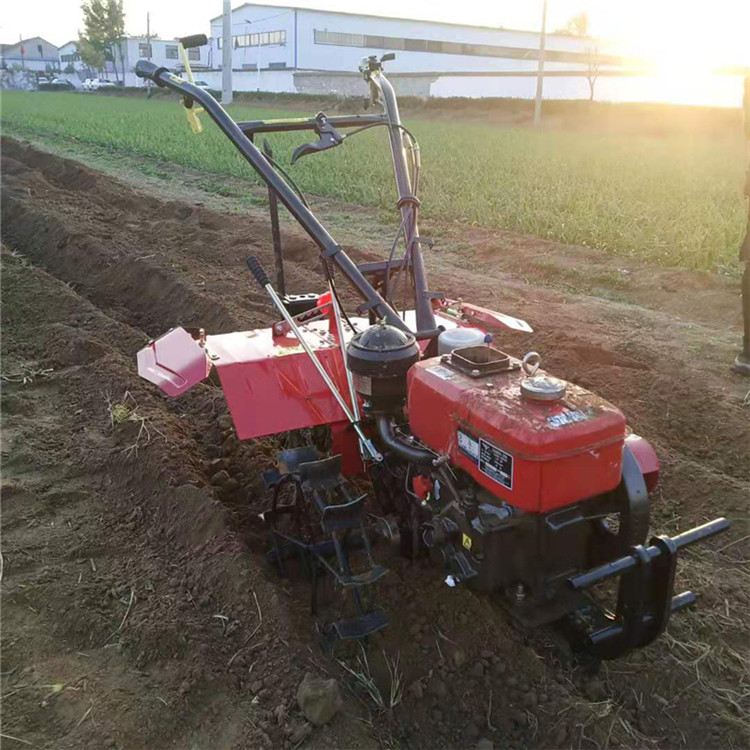 本机器包括机架、可调高低扶手,机架上设有(风冷或水冷)柴油机或汽油机、机架和扶手上设置有变速箱,变速箱的输出轴上设置有能够沿轴移动的驱动轮或链轨.传动方式主要有:全齿轮传动、皮带传动、链条传动三种传动方式.该机具有重量轻,油耗低、相对功率大,结构紧凑、机动性强、操纵轻便灵活的特点。可爬坡、越埂、阶梯性强。广泛适用于平原、山区、丘陵的旱地、水田、果园、菜地、烟地的深旋耕、浅旋耕、犁耕。配上相应机具可进行旱地旋耕、水田旋耕、抽水、开沟、喷淋、喷药除草碎土等作业,还可牵引拖车进行短途运输,是大中型农机无法**的多功能,工作稳定可靠、使用寿命长、维修方便等特点。是进入农民家庭的田园管理机。