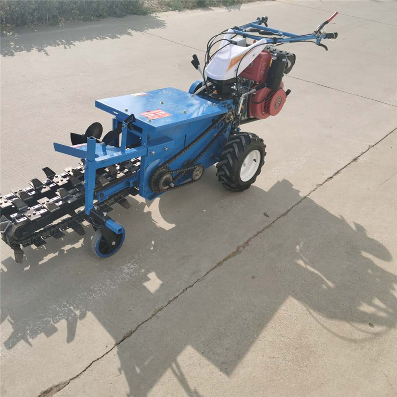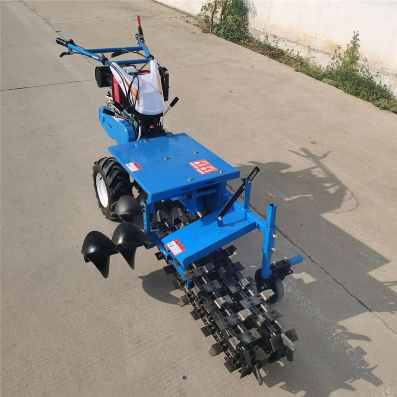手扶链条开沟机是一种用于土方施工中的开沟机械,与挖掘机的功能具有许多相似之处,二者均具有入土(土壤或岩石)、碎土和取土功能,不同之处在于开沟机能连续作业,施工效率较高,地表破坏小,特别适合铺设管路、电缆,即使在砖石等坚硬的地质条件下,开沟机也能开挖出形状规则的沟槽。