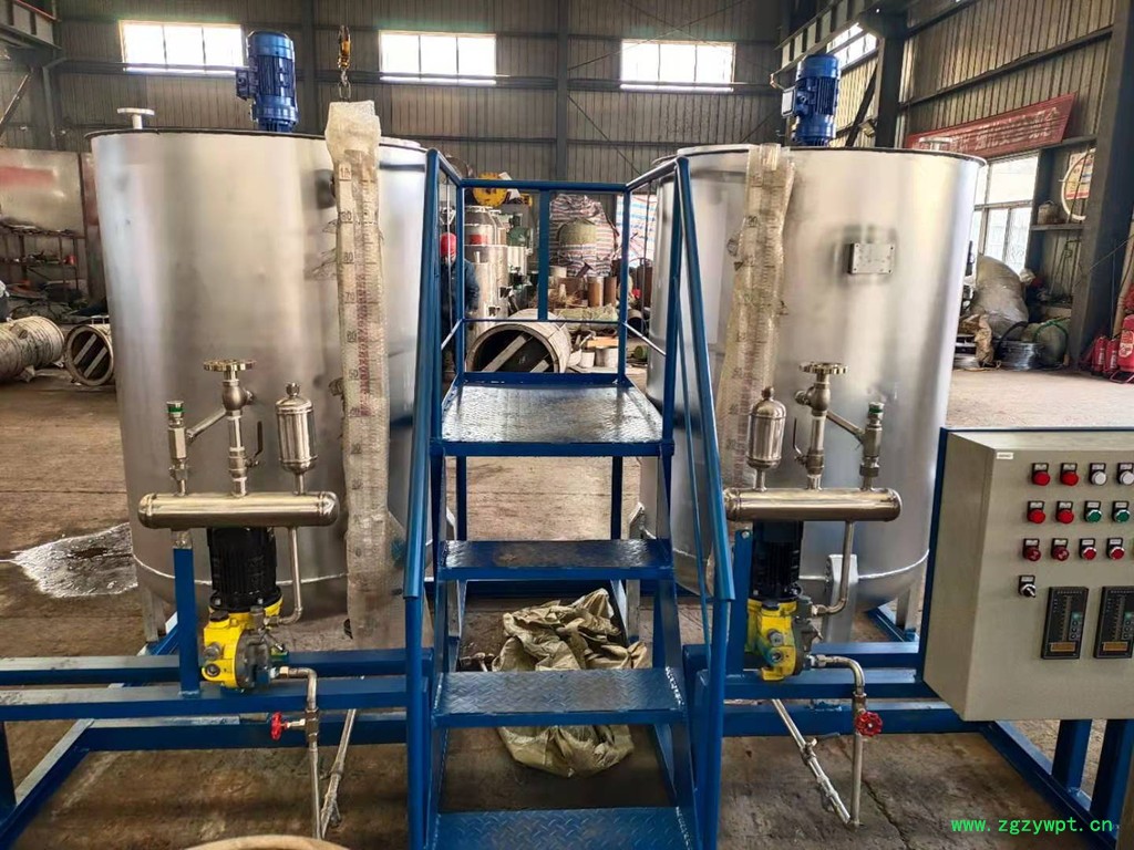 加药装置通过不同的工艺设计,配置各类固体和液体的化学药品的溶液,再用计量泵准确投加,以达到各种设计要求。如除垢、除氧、混凝、加酸、加碱等。