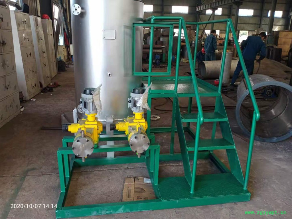 加药装置通过不同的工艺设计,配置各类固体和液体的化学药品的溶液,再用计量泵准确投加,以达到各种设计要求。如除垢、除氧、混凝、加酸、加碱等。