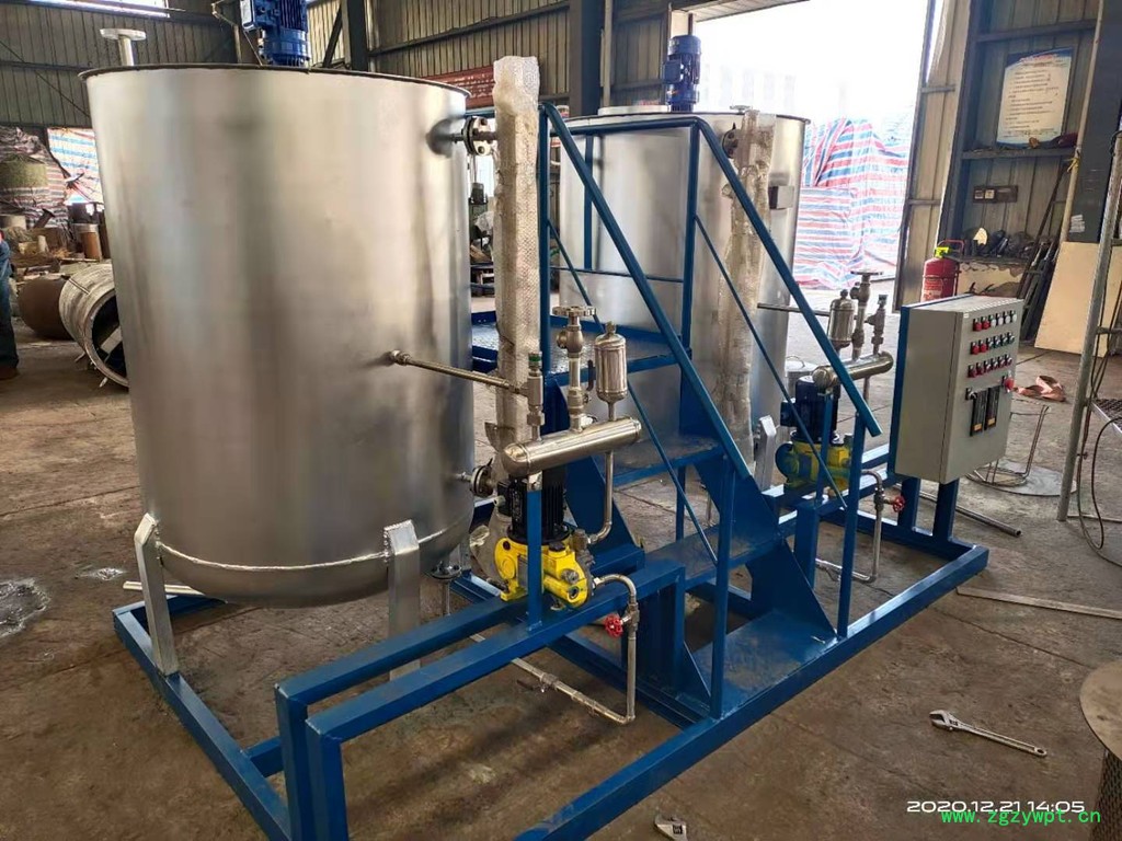 加药装置通过不同的工艺设计,配置各类固体和液体的化学药品的溶液,再用计量泵准确投加,以达到各种设计要求。如除垢、除氧、混凝、加酸、加碱等。