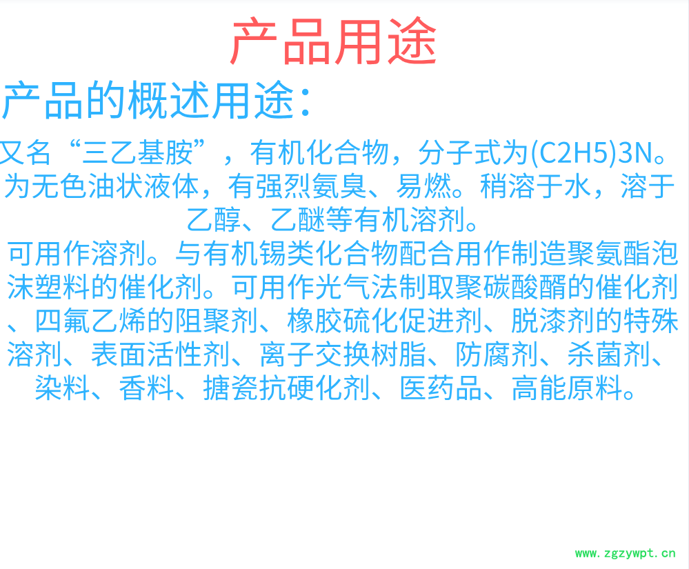 2、主要用作有机合成中的碱、催化剂、溶剂和原料,
