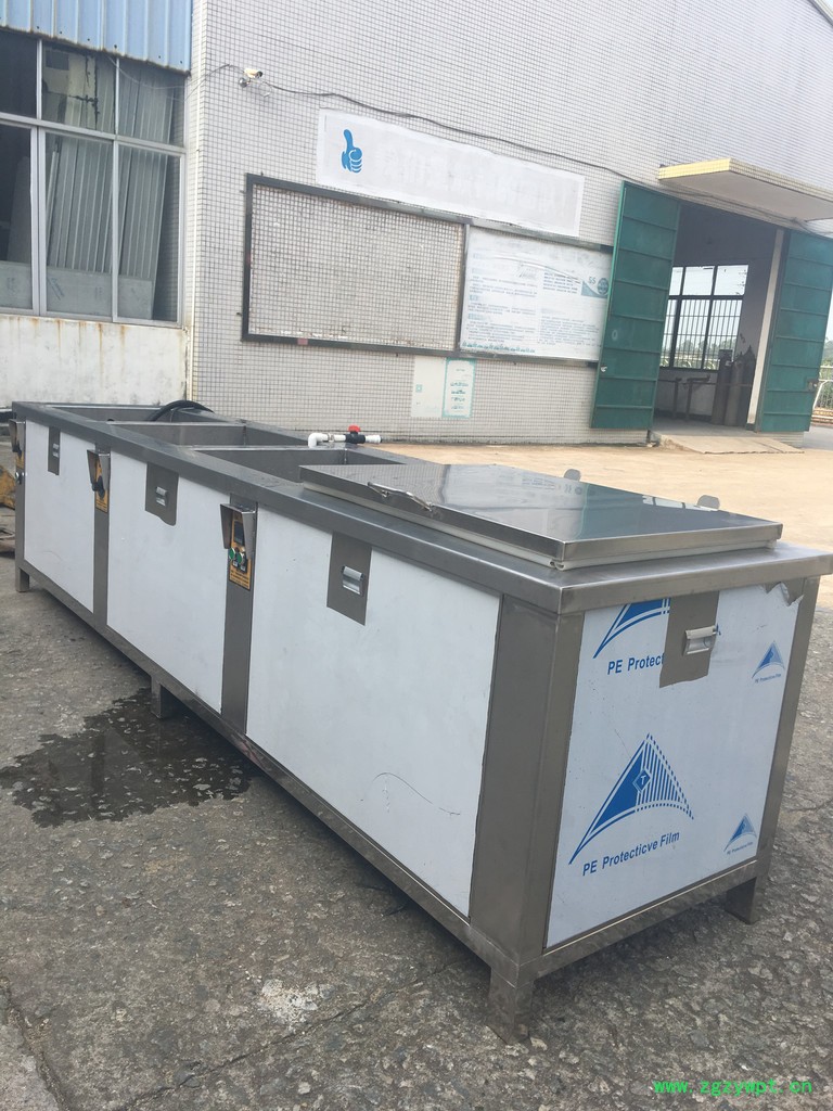 1.2、液箱采用单层结构,采用1.5mm 厚的304不锈钢板制作(可按要求颜色喷涂油漆);内部用隔板分成几个区域,分别实现对清洗液的过滤、滤油、分油;液箱设有补水口、排液口、溢水口。底部为两边向中间倾斜,清洗液从液箱底部的排液口集中排出。