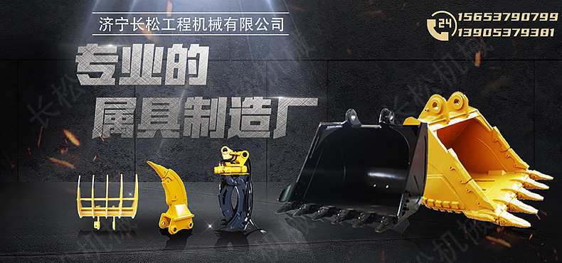 专业生产各品牌挖机属具~土方斗、岩石斗、矿山斗、网格斗、窄斗、定制各种异型斗!耙子、快换连接器、夹木器(轻型、重型)松土器(单齿、双齿、三齿)、加长臂、筛分斗、倾斜斗、液压振动夯。
