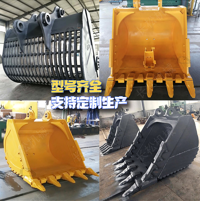 专业生产各品牌挖机属具~土方斗、岩石斗、矿山斗、网格斗、窄斗、定制各种异型斗!耙子、快换连接器、夹木器(轻型、重型)松土器(单齿、双齿、三齿)、加长臂、筛分斗、倾斜斗、液压振动夯。