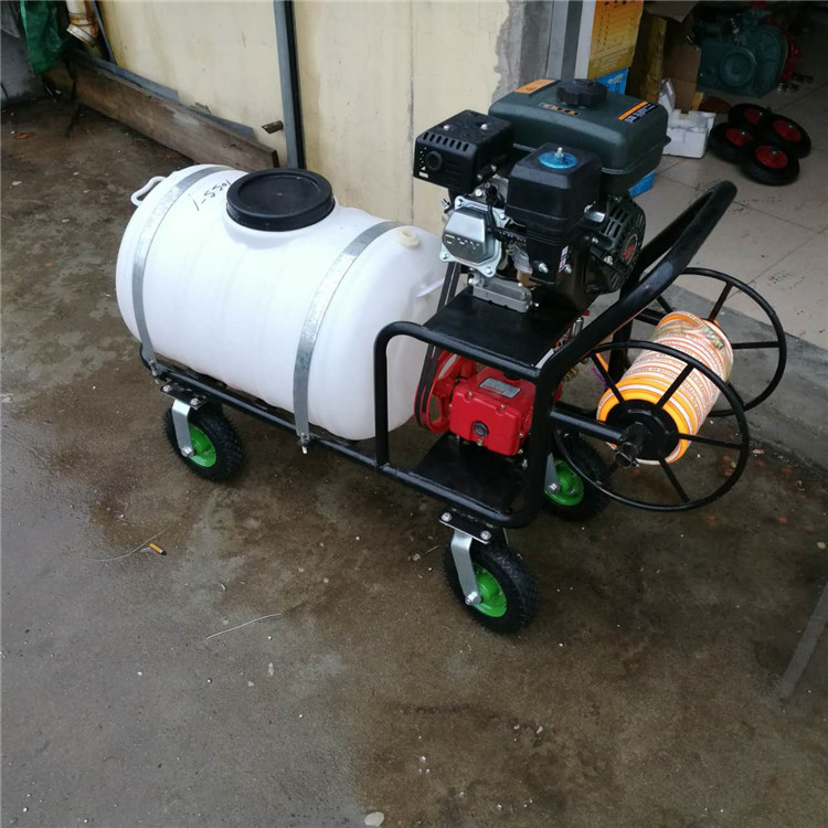 手推式动力喷雾器,又称为四冲程喷雾机,属于高压喷雾器系列。以汽油机为动力,高压柱塞泵为工作源,应用专用喷枪喷雾高度可以达到垂直喷雾25米。如果需要更高喷雾,可延长高压胶管绑在长杆上工作。手推式动力喷雾器(打药机,机动喷雾器)是一种轻便,灵活,高效率的植保机械。适应于各种农作物和经济作物的病虫害防治,如棉花,水稻,小麦,果树,茶树,香蕉,葡萄,柑橘,荔枝等。亦可用于城市环保,作物蔬菜保护,大棚温室灭虫,畜牧防疫等。