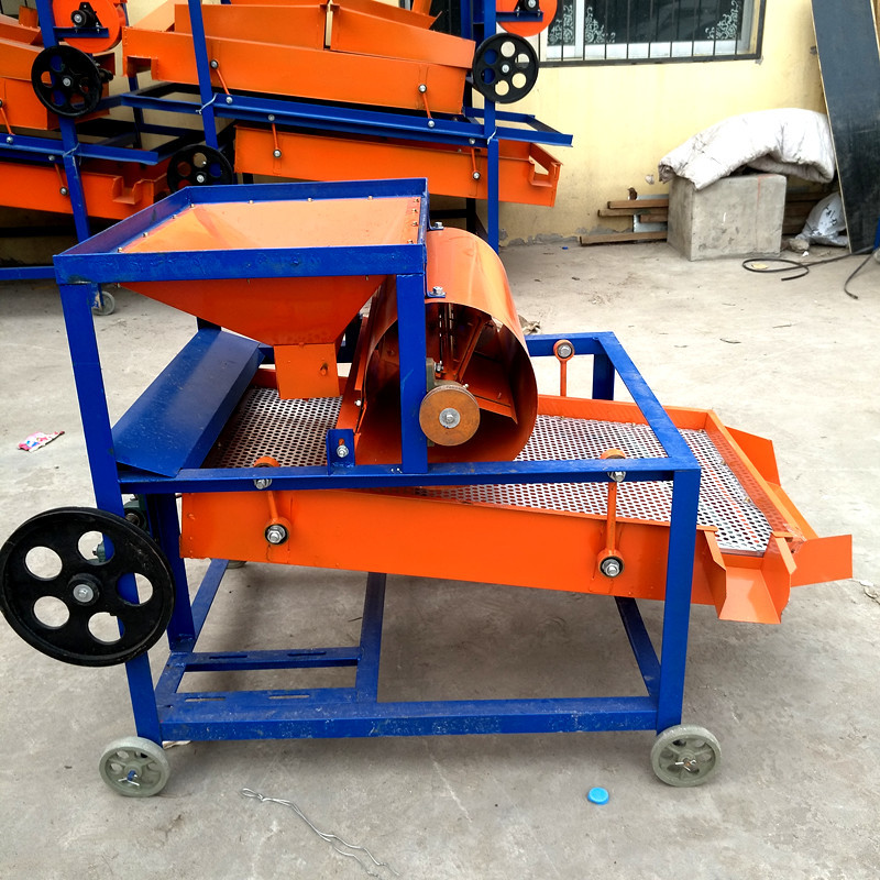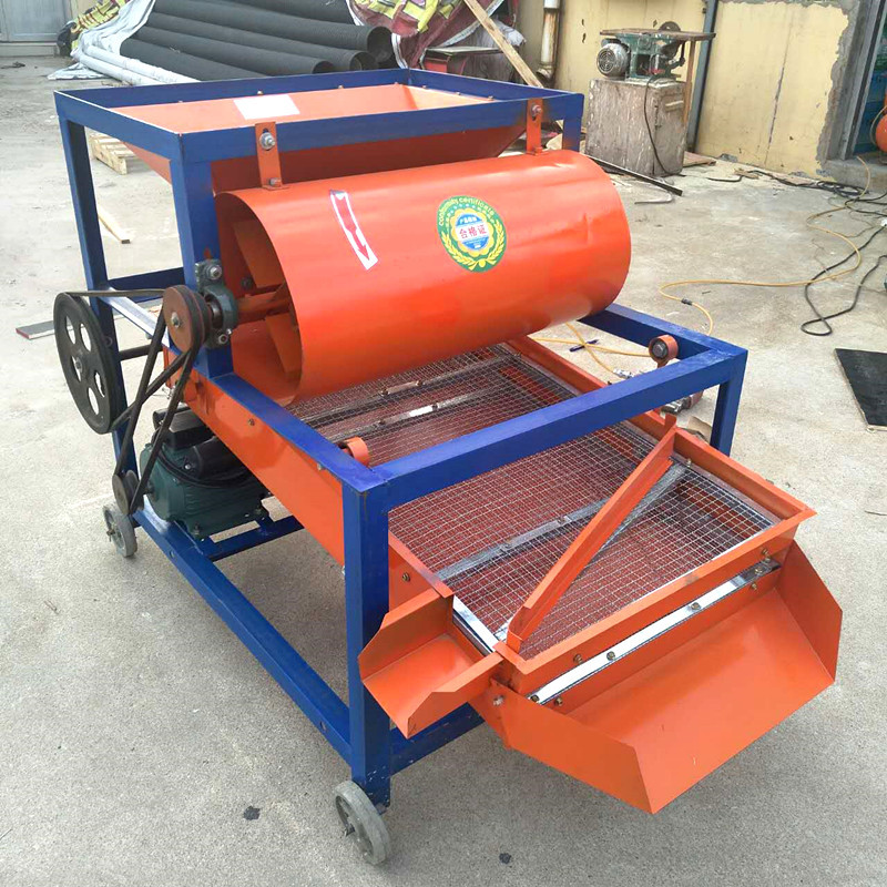 先将机器放置水平位置,接通电源,启动工作开关,确保电机顺时针运转后,以示该机进入正确工作状态。然后把被筛选的物料倒入进料斗,根据物料颗粒大小正确调整料斗底部的塞板使物料均匀进入上层筛网中;同时也使筛子上部的圆筒风机向筛网出料端正确送风;风机下端的引风口也可直接连接布袋接纳谷物中的轻杂废料。