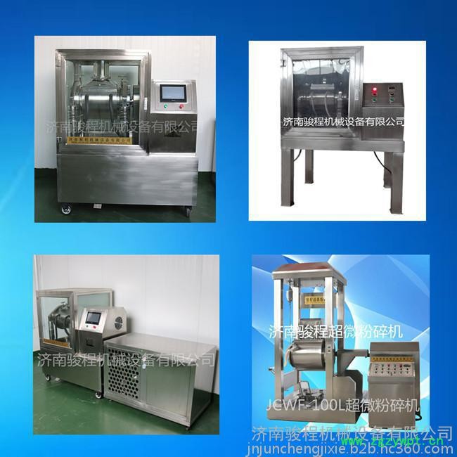 济南骏程中药超微粉碎机介质填充率高,单位时间内作用次数高,在强烈激振力的作用下,粉碎能力强,对于纤维状、高韧性、高强度、含油率高、含糖量高的物料都可以粉碎至细胞级微粉。公司一直致力于中药超微粉碎技术的研发,公司为满足不同客户的不同生产需求研发生产出JCWF-6A、JCWF-6J、JCWF-12A、 JCWF-25A、JCWF-50A、JCWF-100A、JCWF-100B等各种型号的超微粉碎设备。每种型号的超微粉碎机都可以根据生产需要配置适合的低温制冷设备。公司历时半年多的时间,精心研制出JCWF-50型全自动翻转式超微粉碎机,JCWF-100B坐式超微粉碎机,大大提高了粉碎效率,操作更加简易。