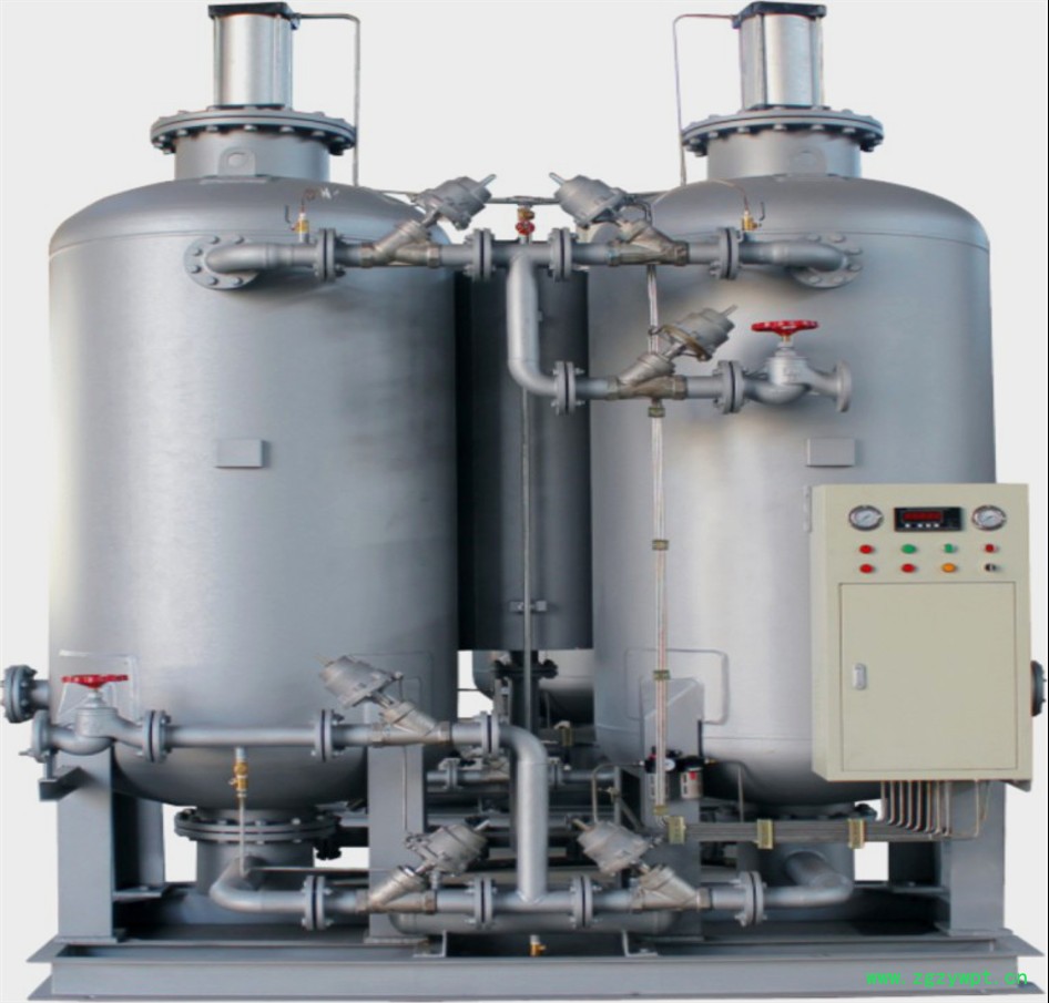 氮,另一塔脱附再生,通过PLC程序自动控制,使两塔交替循环工作,以实现连续生产高品质氮气之目的。
