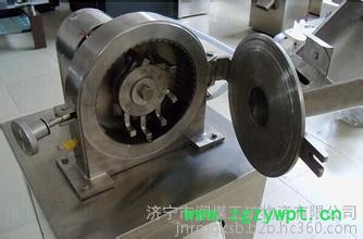 涡轮粉碎机动转时,电机带动主轴及涡轮高速旋转(转速**高可达7500r/min)。涡轮与筛网圈上的磨块组成破碎、研磨副,当物料从加料斗中进入机腔内,物料在涡轮的旋转气流中紧密地摩擦和强烈地冲击到涡轮的叶片内侧上,并在叶片与磨块之间的缝隙中再次研磨。在粉碎物料的同时,涡轮吸入大量空气,这些气流起到了冷却机器、研磨物料及传送细料的作用。物料粉碎的细度取决于物料的性质和筛网的尺寸,以及物料和空气的通过量。粉碎好的物料经旋转离心力的作用,自动进入捕集袋。该机按“GMP”标准设计,全部用不锈钢材料制造,能提高物料的利用率,降低企业成本,目前已达到国际先进水平。