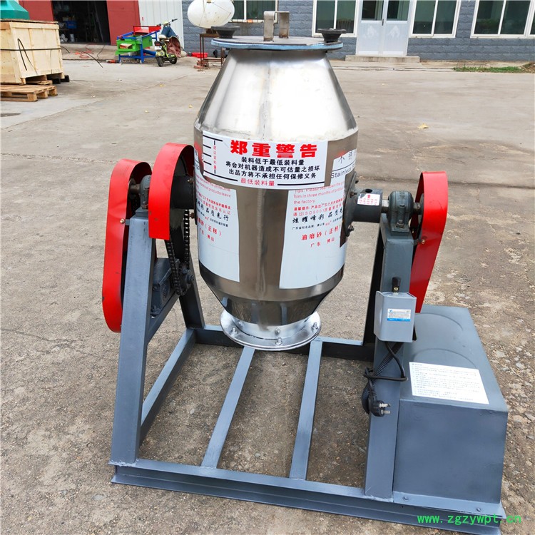 本设备具有结构简单、合理,维修方便,动力小,安全可靠,混合均匀度高,无残留,密封性好等特点。适用于多个行业粉体添加剂和微量元素的混合,干净卫生不氧化。混料机是新型、高效、精细容器回转,用于各种粉状、粒状物料的均匀混合,具有很高的混合度,对添加量很少的配料同样能达到较好的混合度;该机采用机械密封,粉料不会泄漏,轴承使用寿命长;该机混合效率高、工作效率较高、劳动强度低、操作方便,干净卫生不氧化。