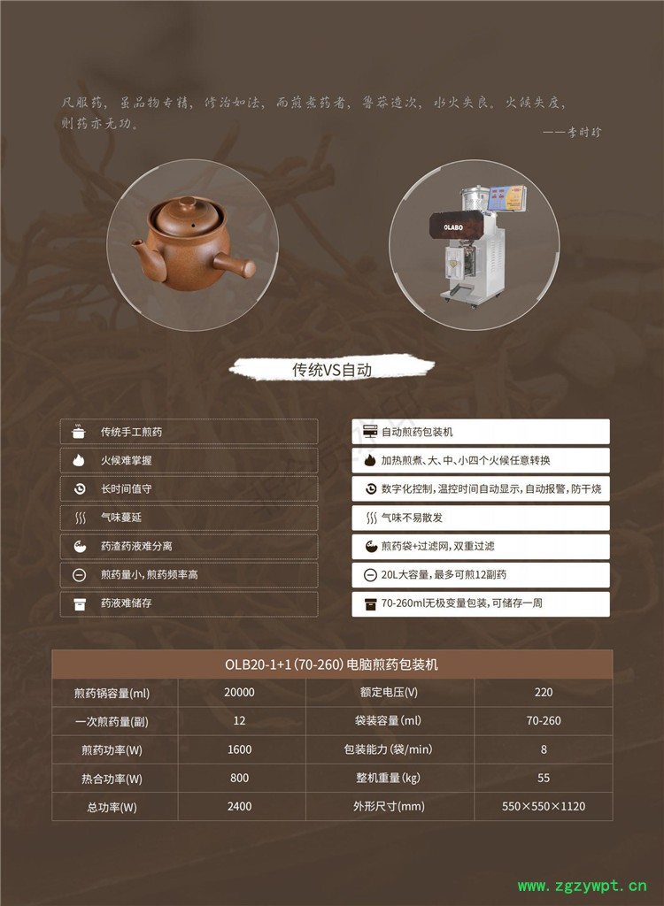 2.数字化总线控制,数字化显示,设计先进,性能稳定。煎药和包装自动操作。