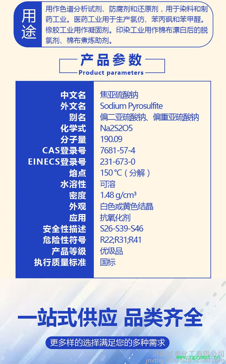 | 型号 | 焦亚硫酸钠 |