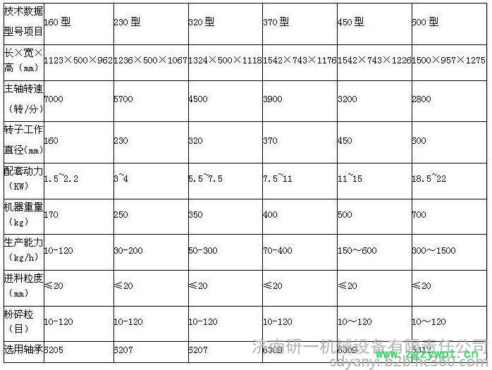 三.研一公司各型号食品粉碎机的技术参数如下: