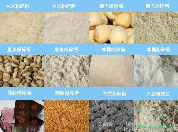 加工范围:1.各种粮食含大米、黑米、黄豆、绿豆、花生、莲子、玉米、高粱、大麦、荞麦、燕麦、小麦等; 2.各种调味料,食品添加剂含花椒,茴香,辣椒,黑胡椒,香菜籽,孜然,姜黄等3.各种食品含红豆沙,绿豆沙,枣泥,南瓜泥,鲜辣椒,红糖,白糖,食盐以及各种蔬菜等4.各种中草药含珍珠,党参,三七,天麻,当归等。5.各种化工原料含尿素,氨肥以及各种西药等。