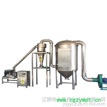 本机由主机、辅机、电控箱三个部分组成,具有风选式、无筛、无网、粒度大小均匀等多种性能,生产过程连续进行。该机在粉碎作业时主机不升温,可粉碎各种热敏性物料。其综合性能已达到国际先进水平,该机广泛运用于食品、化工、制药、饲料、碳酸钙、植物纤维、染料、农药等低硬度物料的超细粉碎。