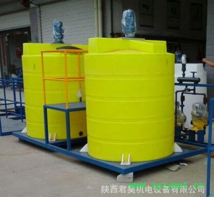 加药箱专门为环保水处理行业储药时使用,储药箱采用防腐的PE /PP/ PVC/UPVC等材质模具成型而成。储药箱的桶顶专门设置有安装计量泵、搅拌机等设备的工作平台,同时桶顶有个带盖的加药孔,方便投药时使用,在简易的一体化加药装置中使用尤其方便。储药箱为满足客户需要先有白色和黄色供选择。
