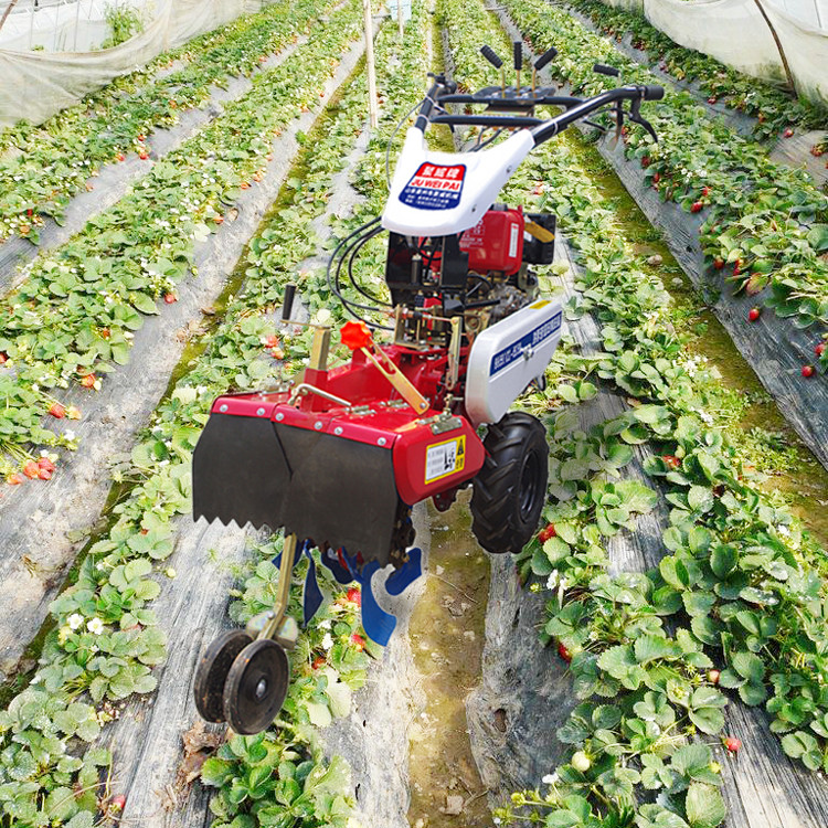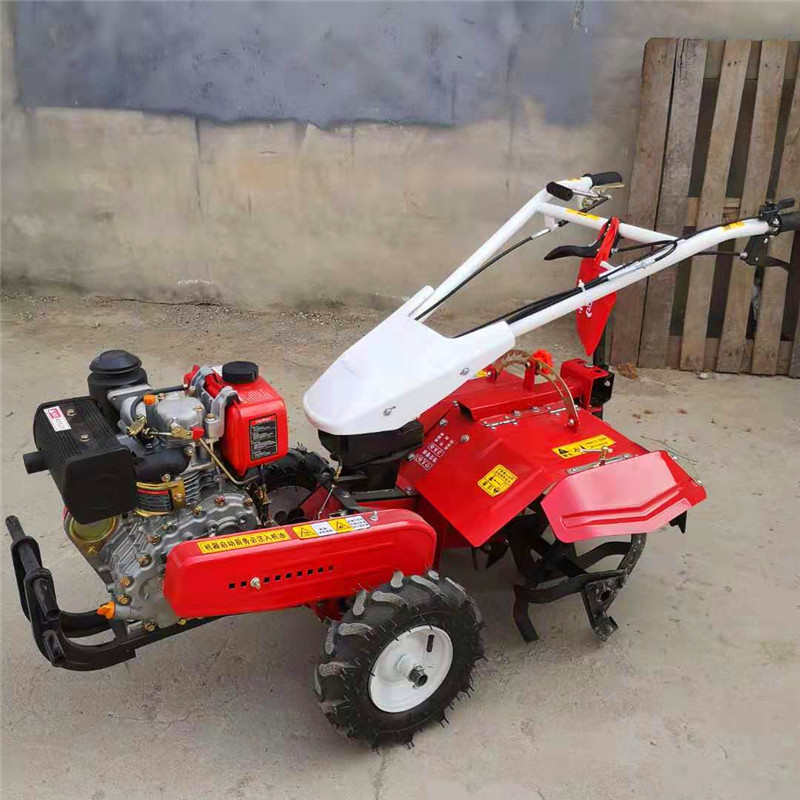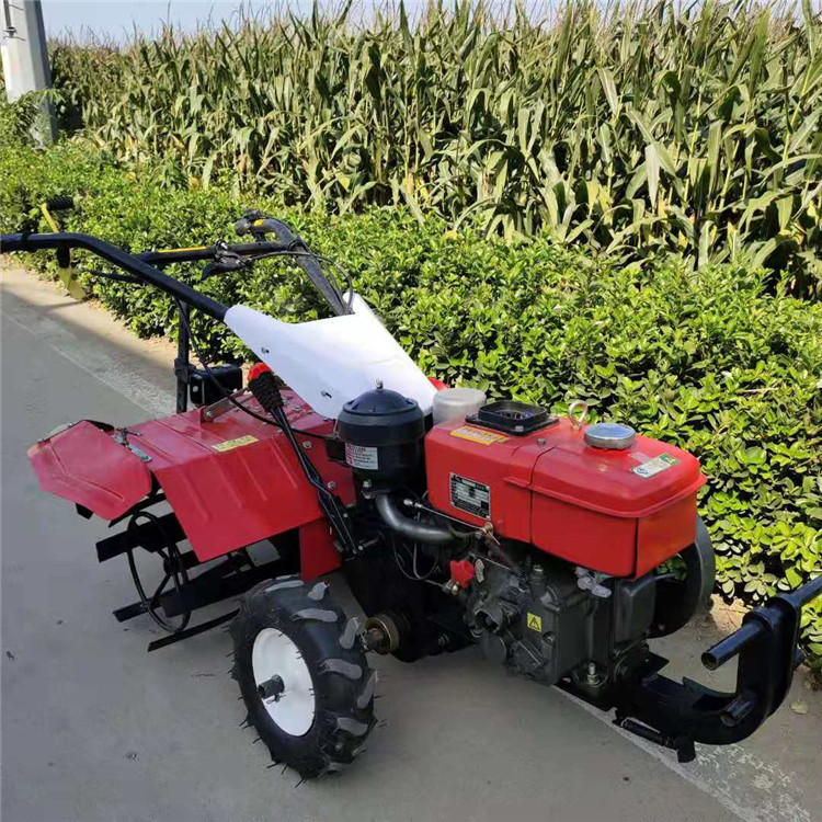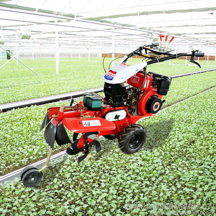 本机器包括机架、可调高低扶手,机架上设有(风冷或水冷)柴油机或汽油机、机架和扶手上设置有变速箱,变速箱的输出轴上设置有能够沿轴移动的驱动轮或链轨.传动方式主要有:全齿轮传动、皮带传动、链条传动三种传动方式.该机具有重量轻,油耗低、相对功率大,结构紧凑、机动性强、操纵轻便灵活的特点。可爬坡、越埂、阶梯性强。广泛适用于平原、山区、丘陵的旱地、水田、果园、菜地、烟地的深旋耕、浅旋耕、犁耕。配上相应机具可进行旱地旋耕、水田旋耕、抽水、开沟、喷淋、喷药除草碎土等作业,还可牵引拖车进行短途运输,是大中型农机无法**的多功能 ,工作稳定可靠、使用寿命长、维修方便等特点。是进入农民家庭理想的田园管理机。自动差速器的田园管理机,可以360度自由转弯,在田间可随意控制方向,极大的方便操作,此外该机采用整体铸造变速箱体,结实耐用,采用干式摩擦离合器,安全可靠。是农民朋友的好帮手