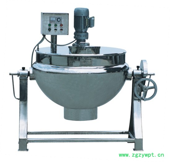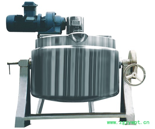 可倾式夹层锅由锅体、支架、蜗轮、蜗杆等部件组成,锅体可作180°以内的转动,本设备为敞口式浓缩,主要用于制药、食品、化工、轻工等行业对料液的煎煮和浓缩,该设备与物料接触部分为不锈钢SUS304,具有较好的耐腐蚀性能,经久耐用,符合cGMP要求,同时亦可根据用户要求,可增加搅拌装置。