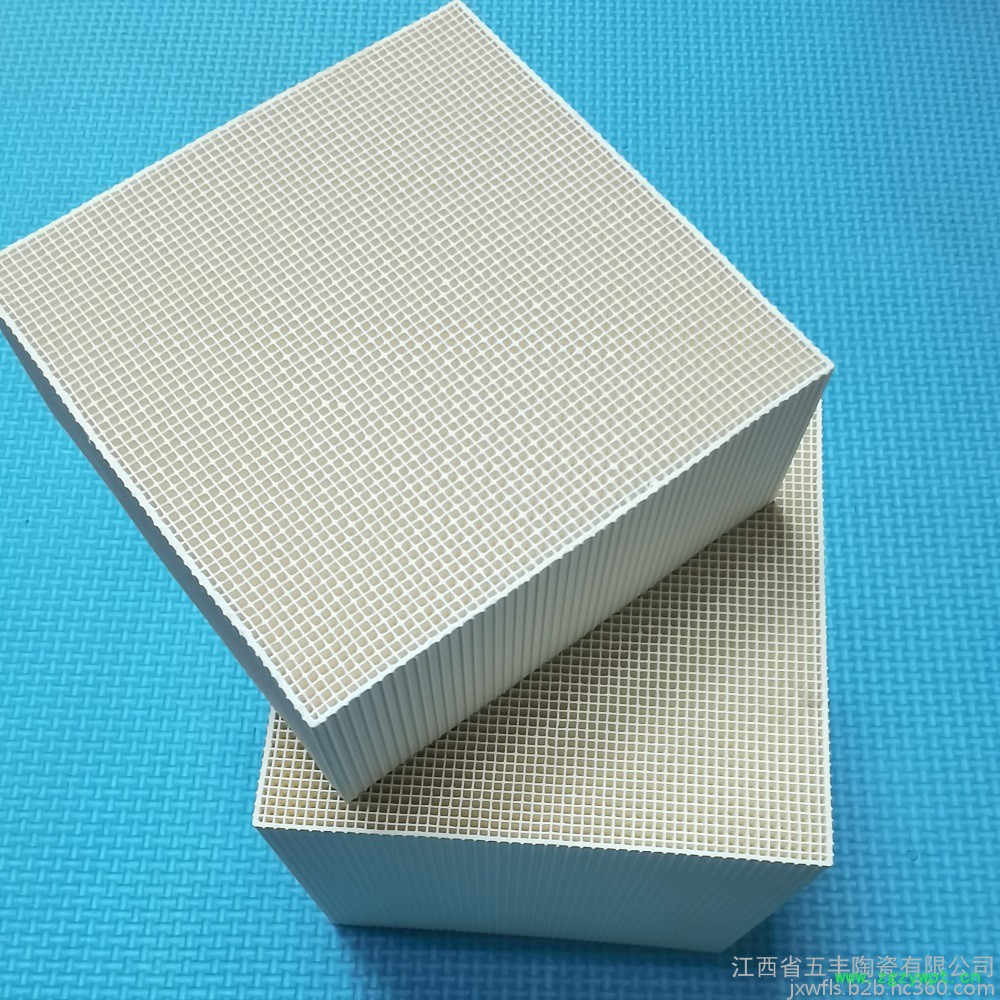 窝陶瓷蓄热体具有耐高温、耐腐蚀、热震稳定性好、强度高、蓄热量大、导热性能好等特点。蓄热式高温空气燃烧是一项具有巨大节能和环保双重功效的燃烧技术,蜂窝陶瓷蓄热体是蓄热式燃烧器的关键部件,用于钢铁、机械、建材、化学、石化、涂料、有色金属冶炼等行业的各种加热炉、热风炉、热处理炉、裂解炉、烘烤器、熔化炉、均热炉、油气锅炉等窑炉中。该技术通过换向装置使两个蓄热室交替吸热放热**地回收烟气的热量,再把炉内的助燃空气和煤气加热到1000℃以上,即使低热值的劣质燃料也能实现稳定着火和高效燃烧,可节省燃料,提高产量,
