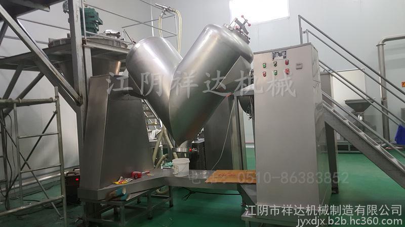 V型混合机是一种新型、高效、高精度的混合设备,它适用于化工、食品、医药、饲料、陶瓷、冶金等行业的粉料或颗料状物料的混和。该机结构合理、简单、操作密闭,进出料方便,(人工或真空加料)筒体采用不锈钢材料制作便于清洗,是企业的基础设备之一。该机自转均有一套电机及摆线针轮减速机来完成,混合速度快,对比重悬殊,混配比较大的物料混合更为适合。本机物料接触部分均为不锈钢制造。