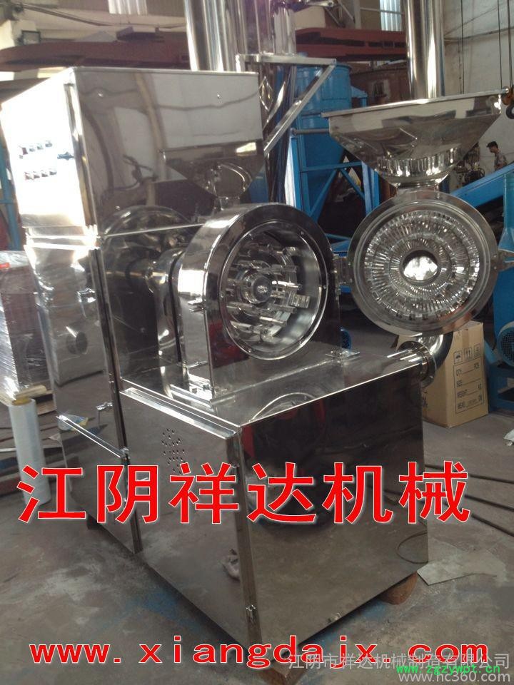 万能粉碎机利用活动齿盘和固定齿盘间的相对高速运转,使被粉碎物经齿盘冲击、摩擦及物料彼此间碰撞而获得粉碎。粉碎物可直接从磨腔中排出,粒度大小由更换不同目数的筛网决定。本机结构简洁、坚固,运转平稳,粉碎物料快速、均匀,效果良好。本机全为不锈钢材料制作,机壳内部(粉碎槽)所有齿槽经精密机加工从而达到表面平滑,易于清理,改变了普通粉碎机内壁粗糙、易积粉、难清理的现象,使食品、药品、化工等生产符合GMP要求。