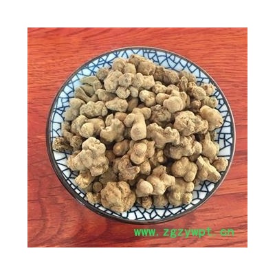 【药材性状】:本品呈类球形、长圆形或不规则块状,长0.5~3cm,直径0.5~2.5cm。表面灰黄色、暗绿色或黑褐色,有瘤状突起和不明显的皱纹,顶端钝圆,可见茎痕,四周有淡黄色点状叶痕及须根痕。质硬,断面黄白色或黄色,颗粒状或角质样,有的略带粉性。无臭,味苦。