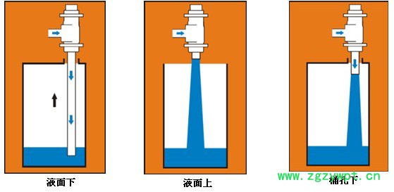 液面下灌装:适用于灌装过程中易产生泡沫、危险气体的液体产品灌装; 液面上灌装:适用于灌装过程中无泡沫或轻泡沫并且不易产生危险气体的敞口式容器的灌装; 桶空下灌装:适用于灌装过程中无泡沫或轻泡沫并且不易产生危险气体的桶孔式容器的灌装; |